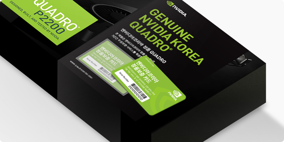 엔비디아코리아 정품 QUADRO 구매 시 패키지 전면부에 제품 시리얼 넘버가 담긴